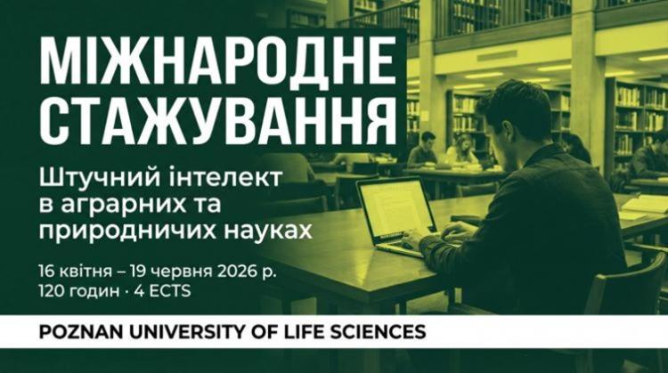 Міжнародне онлайн-стажування: «Штучний інтелект в аграрних та природничих науках» від Познанського університету наук про життя