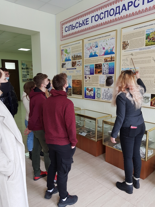 Студентам була донесена інформація про розвиток самого сільського господарства на теренах України. Також була донесена інформація про історію становлення майбутнього аграрного університету – Національного університету біоресурсів і природокористування України. Це можна було побачити на історичних документах й речах.