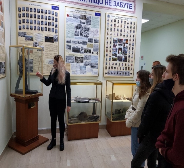 Цікава була розповідь про історію створення самого музею. Вони дізналися, що формування кімнати історії закладу вищої освіти розпочалася за рішенням партійного комітету в грудні 1964 р. Над ним працювали ветерани академії, викладачі кафедр суспільних наук, представники факультетських партійних, комсомольських, профспілкових організацій. Доручалося розробити експозицію кімнати, організувати збір матеріалу, оформити стенди.