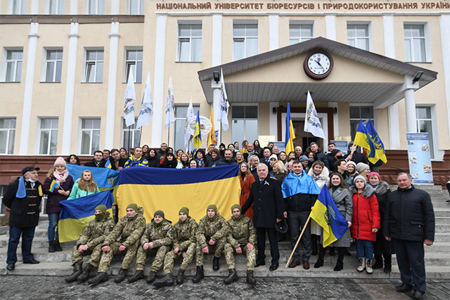 Долучились до дійства з промовами викладач кафедри військової підготовки Тарас Чайка та голова Студентської організації НУБіП України Марина Когут.
