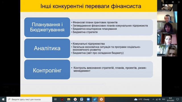 24 жовтня 2022 року відбувся VIІ Науково-практичний семінар «Професійні компетентності фінансиста в умовах сучасних викликів», організований кафедрою фінансів. На семінар були запрошенні представники органів місцевого самоврядування, провідних міжнародних компаній, малого бізнесу та банківської сфери для ознайомлення майбутніх випускників спеціальності 072 «Фінанси, банківська справа та страхування» з сучасними вимогами ринку праці.