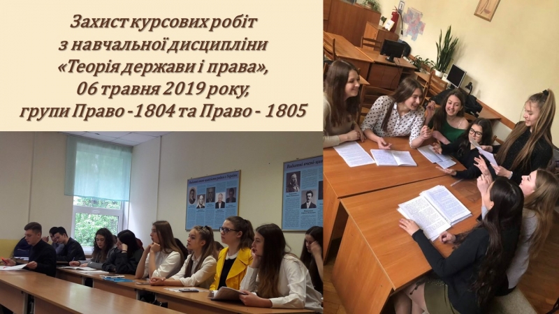 06 травня 2019 року на кафедрі теорії та історії держави і права згідно графіку відбувся захист курсових робіт з навчальної дисципліни "Теорія держави і права" студентами 2 потоку 1 курсу (групи Право-1804 та Право-1805) юридичного факультету денної форми навчання.