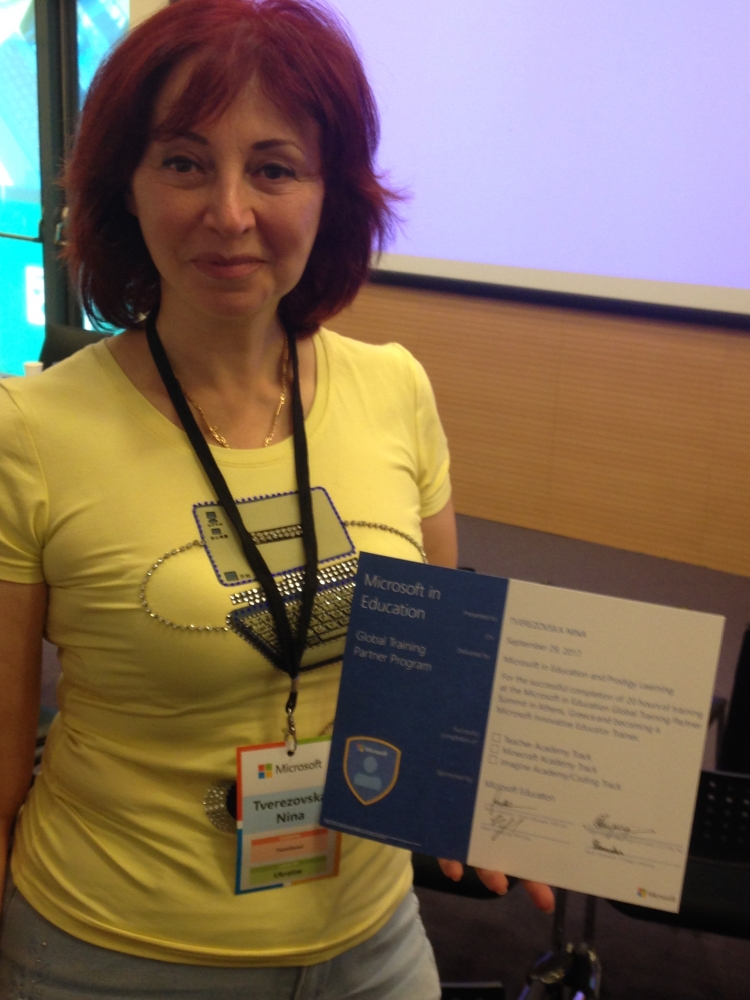 З 26 вересня по 30 вересня 2017 року в м. Афіни (Греція) за підтримки Microsoft організовано та проведено Всесвітній освітній саміт, метою якого було закріплення знань і вдосконалення навичок щодо проведення тренінгу з вчителями за програмою Minecraft Education; набуття вмінь вільному спілкуванню з незнайомою аудиторією; залучення учнів до творчої діяльності.