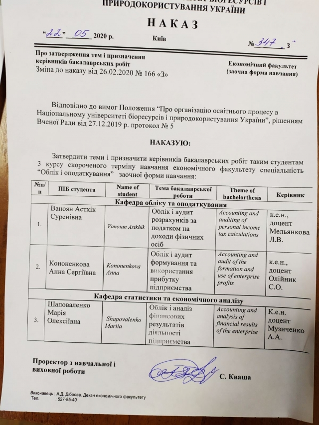 НАКАЗ про призначення тем і керівників бакалаврських робіт ЗФН, 2019-20 н.р_№347 Зміни до НАКАЗу про призначення тем і керівників бакалаврських робіт ЗФН, 2019-20 н.р_№347 25 травня 2020 року 03:00 - 03:00