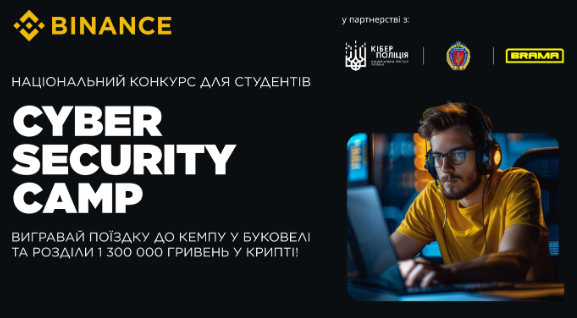 Binance у партнерстві з Кіберполіцією України, Харківським національним університетом внутрішніх справ та ГО «Брама» проведуть національний конкурс серед здобувачів вищої освіти – CYBER SECURITY CAMP.