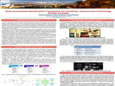 На постерній секції конференції Володимир Анатолійович представив дослідження “Semi-Automated Gamification Framework for Computer Science and Technology Online Courses”. Доповідач відмітив, що нові технології, такі як VR, AR та AI, разом із величезною популярністю відеоігор і цифрових розваг відкривають нові можливості для викладачів і розробників онлайн-курсів, а також різноманітних методів гейміфікації. Фреймворк Gamification — це напівавтоматизована система, яка має бути підключена до існуючої освітньої онлайн-платформи.
