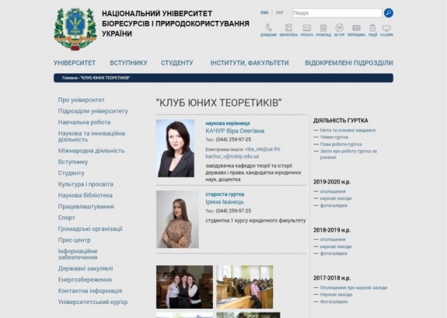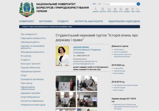 На кафедрі теорії та історії держави і права функціонують два студентські наукові гуртки «Клуб юних теоретиків» (наукова керівниця – Віра Качур) та «Історія учень про державу і право» (наукова керівниця – Людмила Протсоавіцька).