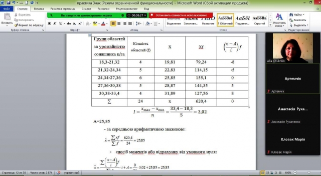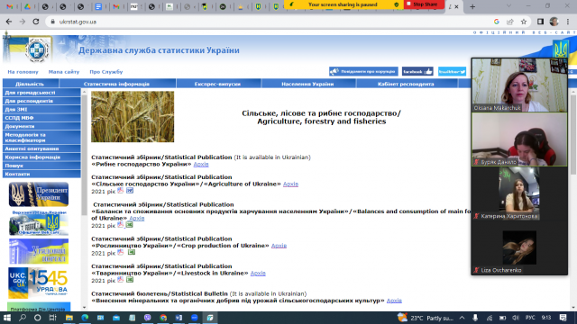 В перший день навчальної практики було проведено інструктаж з техніки безпеки та охороні праці, розглянуто організаційні питання щодо проведення практики, визначено основні завдання навчальної практики, теми статистичного дослідження тощо. Відповідно до тематики дослідження кожним студентом здійснено збір та обробку первинного статистичного матеріалу з використанням джерел інформації: офіційного сайту Державного Комітету статистики України (URL: http://ukrstat.gov.ua/), офіційного сайту Продовольчої та сільськогосподарської організації ООН (ФАО) (URL: http://www.fao.org/), офіційного сайту Міністерства економічного розвитку і торгівлі України ( URL: http://www.kmu.gov.ua), офіційного сайту Міністерства фінансів України (https://www.mof.gov.ua/uk), офіційного сайту Світового банку (URL: http://www.worldbank.org/), офіційного сайту Євростату (URL:http://epp.eurostat.ec.europa.eu/portal/).