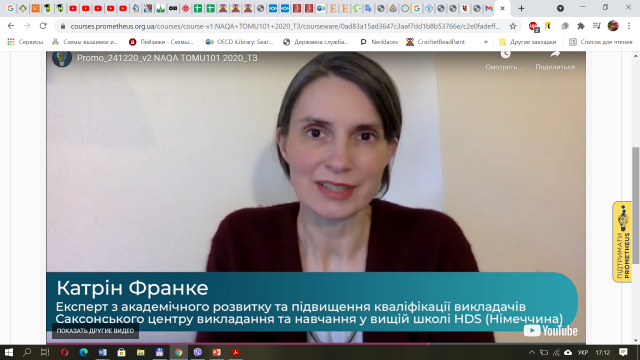 Курс спрямований на підвищення рівня викладання у закладах вищої освіти, налагодженню партнерства та співпраці між усіма суб’єктами навчання. У рамках курсу розглядалися такі важливі питання, як роль якості викладання у внутрішній якості освіти, професійний стандарт викладача вищої школи, приклади тьюторингу. Також під час навчання було надано детальне пояснення сутності та процесу створення силабусу, ролі гаранта у розвитку програми та узгодженні курсів в її межах. Колеги із Німечини поділилися досвідом організації процесу взаємовідвідування викладачів як методу підтримки та розвитку викладання.