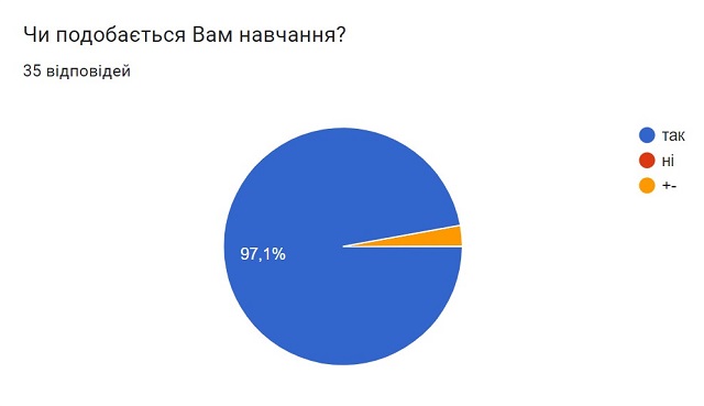Нас, студентських кураторів, у першу чергу, цікавили відповіді на запитання чи подобається студентське життя нашим першокурсникам. І відповіді нас приємно вразили, оскільки жоден студент не вказав, що йому не подобається навчання, а навпаки, 97,1% – впевнено відповіли «так», нам подобається навчання за спеціальністю «Соціальна робота» в НУБіП України.