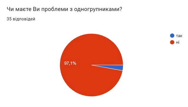 Про успішну адаптацію студентів-першокурсників свідчить відповідь на запитання «Чи маєте Ви проблеми з одногрупниками?». Як бачимо, тільки 1 студент відчуває, що має певні труднощі у спілкуванні з одногрупниками.