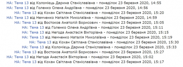 За період з початку карантину кожного дня активність студентів зростає. Відразу вирішуються всі робочі питання через наявні ресурси месенджерів, на основі використання чатів, форуму дистанційного обговорення.
