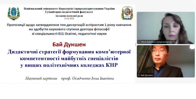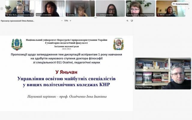 На початку засідання члени наукової ради уточнили теми дисертацій аспірантів із Китайської Народної Республіки, надали рекомендації щодо актуальних напрямів досліджень.