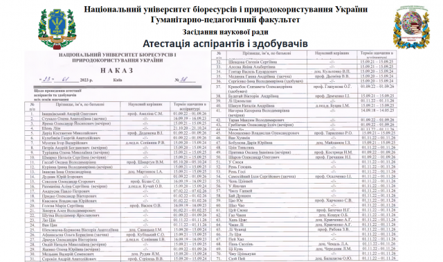 Відповідно до наказу ректора від 23.01.2023 № 38, 20 лютого на онлайн-засіданні наукової ради гуманітарно-педагогічного факультету відбулася атестація аспірантів і здобувачів вищої освіти ступеня доктора філософії, які навчаються за ОНП зі спеціальностей 011 Освітні, педагогічні науки, 015 Професійна освіта, 032 Історія та археологія, 033 Філософія та 053 Психологія.