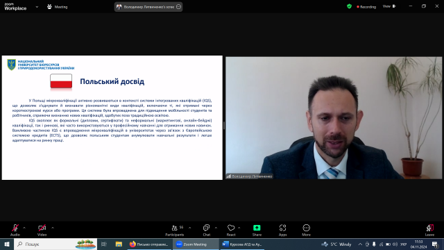 Завідувач кафедри обліку та оподаткування Володимир Литвиненко у своєму виступі акцентував увагу на теоретико-методологічних засадах розвитку бухгалтерського обліку та проблемах підготовки бухгалтерських кадрів в системі вищої агроекономічної освіти. Неабиякий інтерес учасників викликала його доповідь на тему «Мікрокваліфікаційні курси як інструмент підвищення якості та адаптивності вищої освіти».