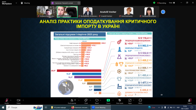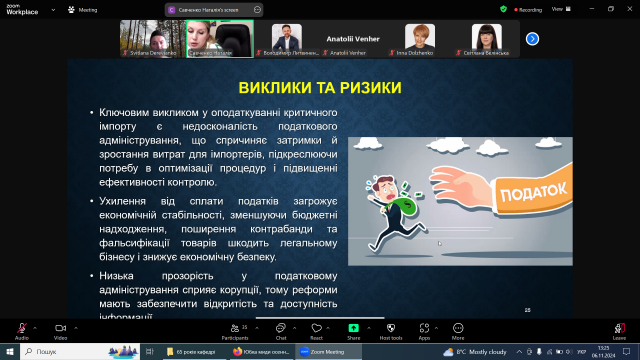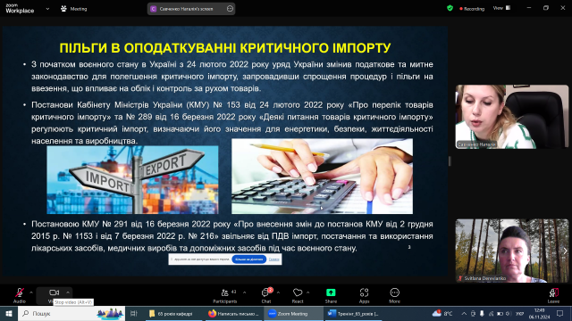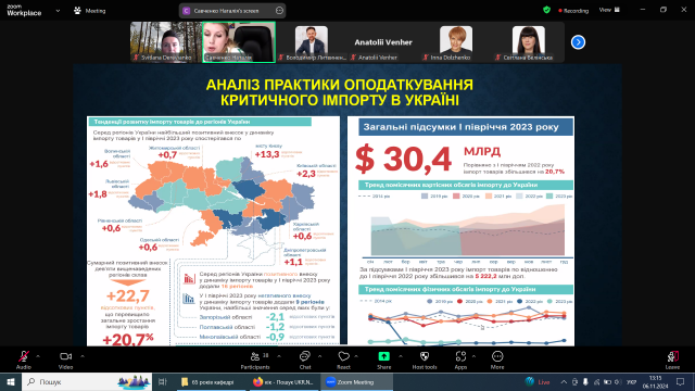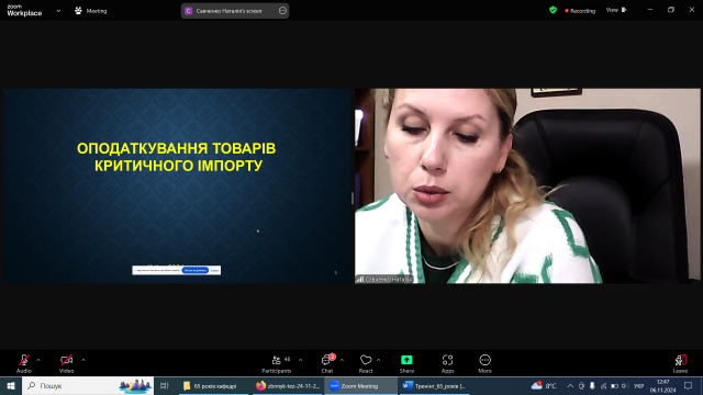 Особливості оподаткування ПДВ послуг в зовнішньоекономічній діяльності завжди викликали ускладнення в правозастосовній практиці, породжуючи низку суперечливих податкових консультацій та аналітичних матеріалів. Не є винятком стан речей в даній сфері і сьогодні через нормотворчу турбулентність останніх місяців. Здобувачка PhD кафедри обліку та оподаткування НУБіП України Наталія Савченко представила доповідь на тему: «Оподаткування товарів критичного імпорту».