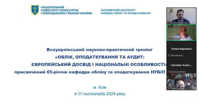 4-9 листопада 2024 року на економічному факультеті НУБіП України відбувся всеукраїнський науково-практичний тренінг «Облік, оподаткування та аудит: європейський досвід і національні особливості», присвячений 65-річчю кафедри обліку та оподаткування.