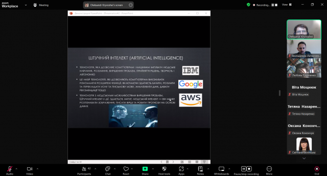 «Штучний інтелект як інструмент обліку, маркетингу та управління підприємством» – тема доповіді аналітика консолідованої інформації товариства з обмеженою відповідальності «ЕПАМ СИСТЕМ» (LLC «EPAM SYSTEMS»), здобувача PhD Олександра Кривошея.