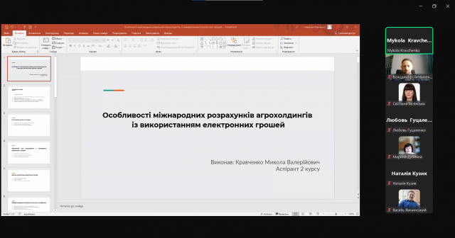 Микола Кравченко, менеджер по розрахункам з персоналом представництва «Новартіс Фарма Сервісез АГ» в Україні, здобувач PhD зупинився на особливостях міжнародних розрахунків агрохолдингів із використанням електронних грошей, а Василь Овчарук, головний економіст Філії Птахофабрики «Авіс» ТОВ «Аграрний Холдинг «Авангард», здобувач PhD розглянув актуальні питання побудови внутрішнього контроль забезпечення якості продукції птахівництва.