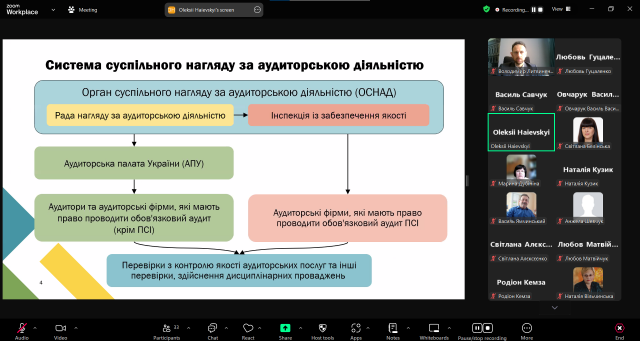 Питання якості аудиторських послуг завжди є актуальним напрямом наукових досліджень як в Україні, так і в країнах світу. З 2017 року український аудит живе за новими правилами, серед яких – контроль за якістю аудиту. Така вимога профільного закону. Одначе ні в цьому законі, ні у Міжнародних стандартах аудиту, ні у роз’ясненнях Міністерства фінансів Україні – ніде немає ані визначення якості аудиту, ані її критеріїв. А зовнішній контроль за якістю здійснюється. Проблема, що виникла, негативно впливає на без того слабкий ринок аудиторських послуг в Україні й потребує принаймні обговорення серед науковців, не кажучи вже про намагання її вирішити. Ці та інші актуальні питання були озвучені у доповіді на тему «Зовнішній контроль регулятора якості аудиторської діяльності (послуг)» Олексія Гаєвського, здобувача PhD.