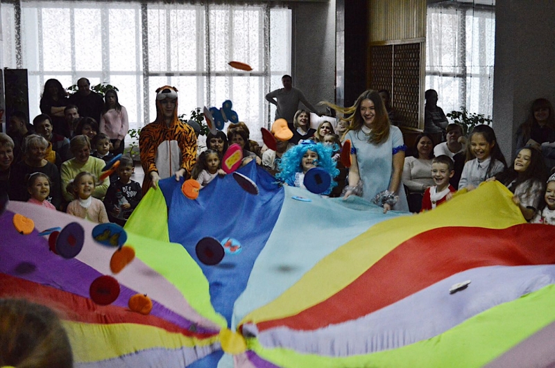 Ну і весело ж було! Хороводи, загадки, цікаві конкурси! А чого тільки варте пролізання через казковий тунель! А створення картатого полотняного «моря» з «феєрверком»! А прикрашання мами у ролі «ялинки»! І звичайно ж головна подія, заради якої діти цілісінький рік вели себе чемно, були слухняними та вивчили вірші, пісеньки. Так, це звичайно ж подарунки від Святого Миколая!
