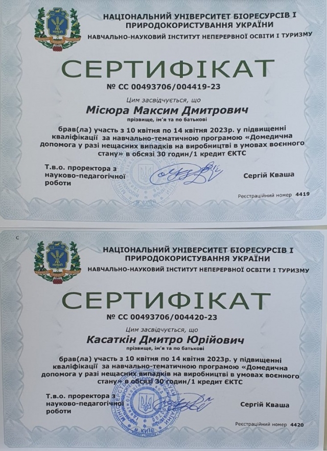 НПП кафедри взяли участь у навчанні з домедичної допомоги у разі нещасних випадків на виробництві в умовах воєнного стану
