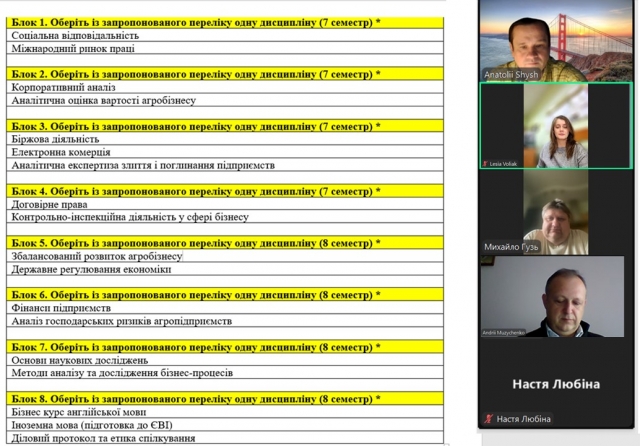 07 листопада 2024 року в онлайн режимі (у зв’язку з дистанційним навчанням) відбулося обговорення питання обрання вибіркових дисциплін здобувачами вищої освіти 3 курсу ОП «Аналітичне і обліково-правове забезпечення бізнесу».