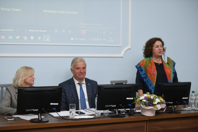 В обговоренні виступила декан агробіологічного факультету Оксана Тонха, яка відзначила необхідність співпраці між агробіологічним факультетом та факультетом інформаційних технологій в галузі моніторингу, створення та використання баз даних с/г показників для аналізу та моделювання, прийняття рішень. Оксана Леонідівна висловила слова підтримки на адресу Олени Григорівни, відзначила системність у її роботі, прогресивні погляди щодо організації освітньої діяльності та управлінської роботи на факультеті.