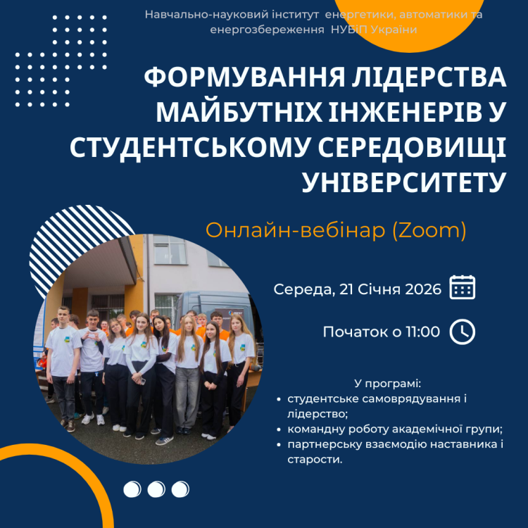 Онлайн-вебінар «Формування лідерства майбутніх інженерів у студентському середовищі університету»