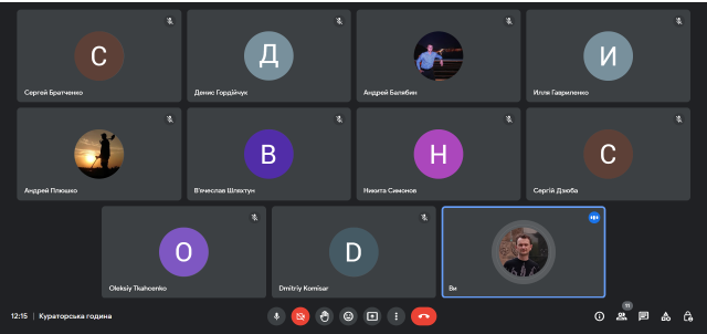 На онлайн зустрічі наставника, Гуменюка Юрія Олеговича, із студентами групи АІ-2204 обговорювались кілька ключових питань. Одним із центральних аспектів обговорення стала успішність групи протягом поточного семестру. Разом зі студентами розглянули результати проміжної атестації та можливі шляхи поліпшення навчального процесу.