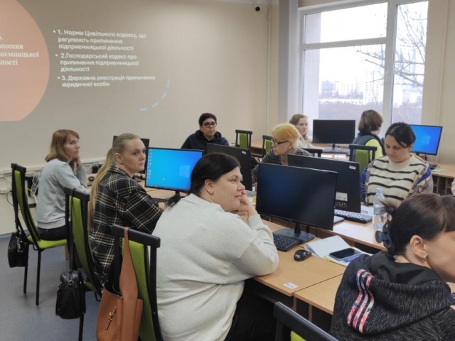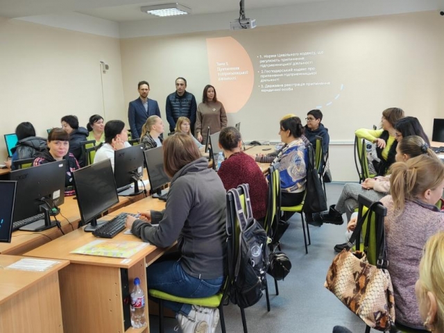 У ході спілкування учасниці проєкту висловили свої позитивні враження про навчання, зазначили, що уже пройшли модуль «Бухгалтерський облік (загальна теорія)» та активно вивчаються модулі «Фінансовий облік» і «Господарське законодавство». Курс має практичне спрямування і проходить відповідно до затвердженої програми курсу. Представники ГО «Елеос-Україна» та міжнародної благодійної організації були також присутніми на занятті з дисципліни «Господарське законодавство», яке проводив Олексій ПІДДУБНИЙ.