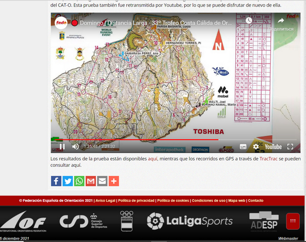 Стаття, відео про змагання на сайті федерації орієнтування Іспанії: El Trofeo Costa Cálida pone fin a la temporada de O-Pie 2021 - Federación Española de Orientación (fedo.org)