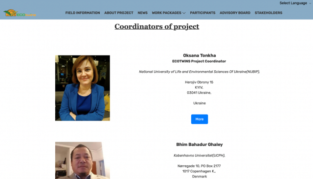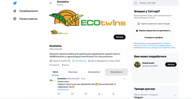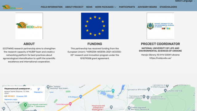 У 2023 році в НУБіП України розпочато дослідження в межах проєкту HORIZON EUROPE, ECOTWINS «Розвиток дослідницького потенціалу та підвищення кваліфікації і навичок групи дослідників НУБіП України з агроекологічної інтенсифікації галузі рослинництва» (номер проекту 101079308 – ECOTWINS – HORIZON-WIDERA-2021-ACCESS-03). Цей проєкт координує агробіологічний факультет НУБіП України, а команду учасників проекту очолює декан факультету Оксана Тонха.