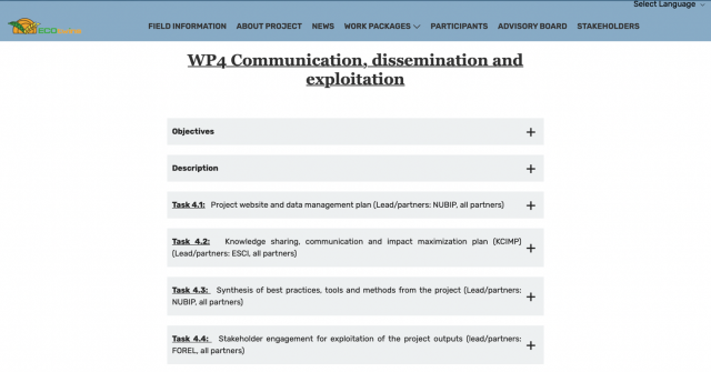 Одним із завдань проекту є створення інструментів для розповсюдження для сприяння обміну знаннями, отриманих у проекті. Ці інструменти покликані забезпечити ефективне постачання інформації фермерам, дорадчим службам, вищим навчальним закладам та іншим користувачам, які цікавляться агроекологічним землеробством, у різних форматах для максимального охоплення спільнот кінцевих користувачів.