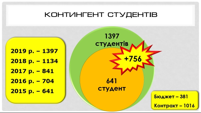 Якщо 2016/2017 навчальному році на факультеті навчалося 704 студенти, то на сьогодні маємо вже 1397. Тобто кількість студентів виросла вдвоє, а порівняно з 2017/2018 навчальним роком кількість студентів збільшилася на 263 студенти.
