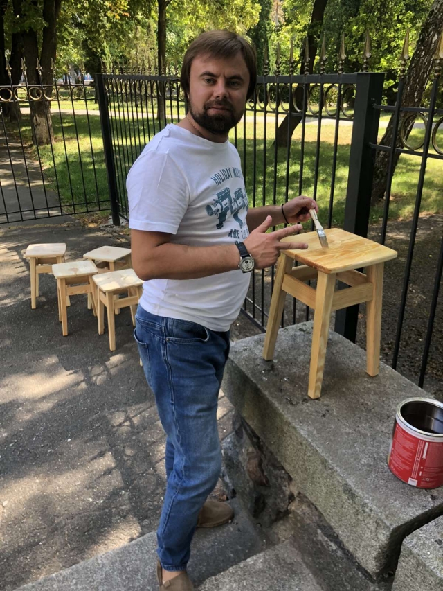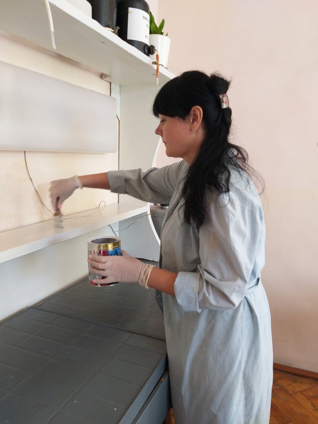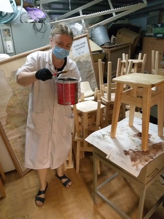 Під керівництвом і безпосередньою участю завідувача лабораторії Карабач Катерини Сергіївни, пофарбовані 40 нових дерев’яних стільців, отримані для кімнати 33.