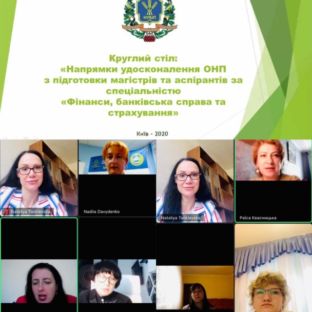 Колектив кафедри постійне прагне до удосконалення, тому в році, що минає, був проведений круглий стіл з обговорення підвищення якості підготовки магістрів та аспірантів за спеціальністю «Фінанси, банківська справа та страхування» з колегами – науковцями, експертами НАЗЯВО і стейкхолдерами. Круглий стіл проходив в очно та в он-лайн режимі з використанням хмарного сервісу Zoom.