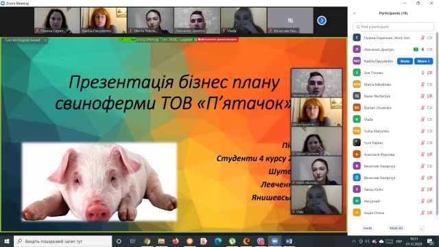 З метою покращення продовольчої безпеки країни, забезпечення населення м’ясом, був представлений проект по організації свиноферми ТОВ «П’ятачок» на 500 голів у Черкаській області із рівнем рентабельності 25 %.