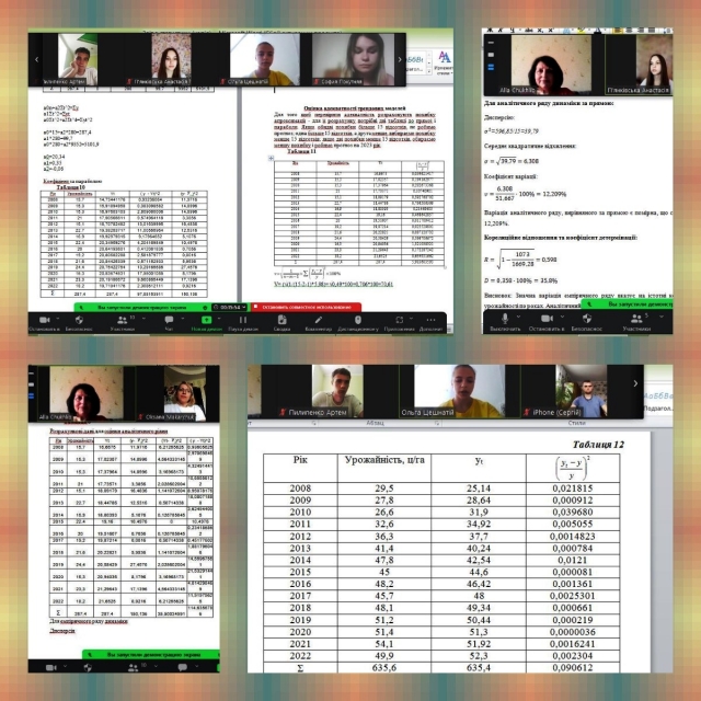 Під час проходження навчальної практики кожен здобувач вищої освіти отримав індивідуальне завдання щодо проведення статистичного дослідження результативних показників й індикаторів виробництва окремих видів продукції сільськогосподарськими підприємствами в розрізі областей України.