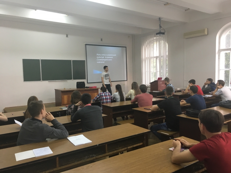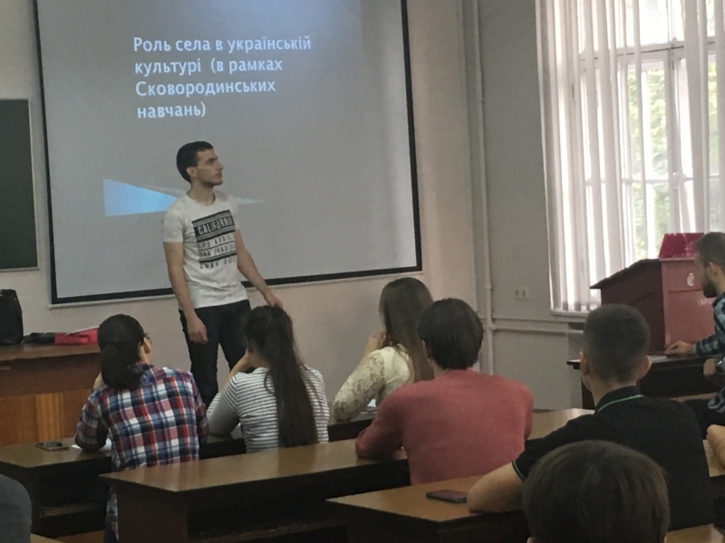 «Пізнай свій край… себе, свій рід, свій нарід, свою землю – і ти побачиш свій шлях у життя…» - ці важливі для сьогодення слова великого філософа Г.С. Сковороди, що пролунали понад 250 років тому, залишаються актуальними, і нині. В рамках започаткованих МОН та ініційованих Українським фондом культури готуючись до 300-ліття Григорія Сковороди, Всеукраїнські Сковородинські навчання «Пізнай себе». В рамках цих навчань був проведений теоретичний семінар «Роль села в українській культурі» зі студентами факультету «Інформаційних технологій». Зацікавленість студентів та жваві дискусії свідчать про актуальність та проблемність даного питання.