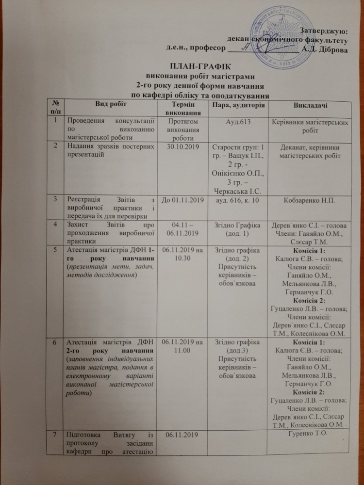 ПЛАН_ГРАФІК виконання робіт магістрами ДФН по кафедрі обліку та оподаткування