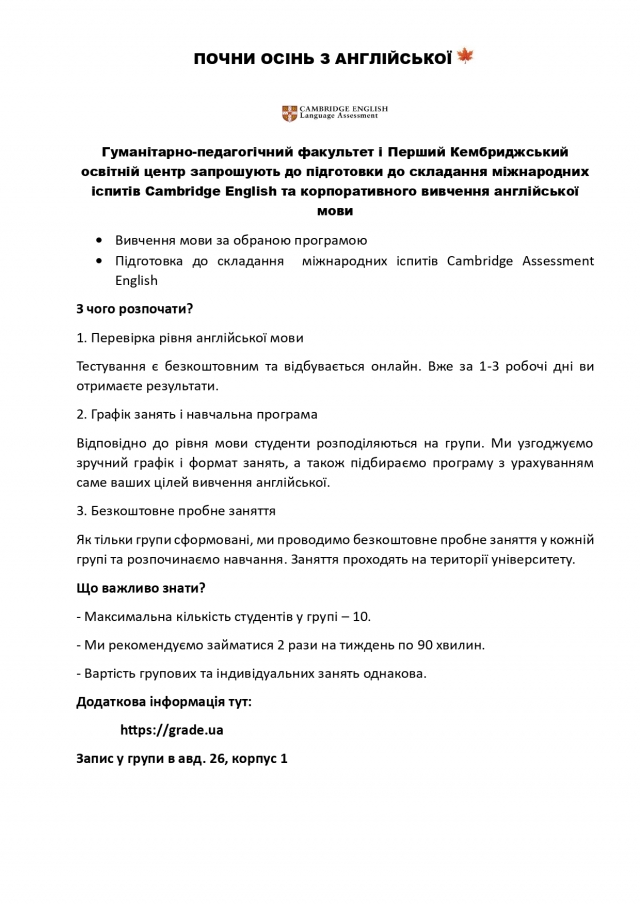 ПОЧНИ ОСІНЬ З АНГЛІЙСЬКОЇ
