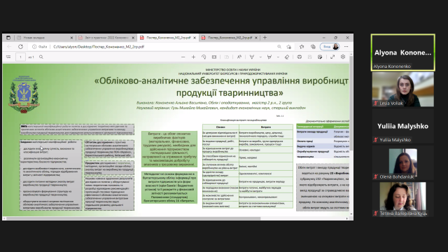 У цілому постерна конференція показала, що, незважаючи на складні умови, в яких наразі відбувається освітній процес, магістрантам за допомогою використання сучасного науково-методичного інструментарію вдалося глибоко дослідити широке коло економічних проблем, а ґрунтовні висновки й пропозиції засвідчили високий рівень підготовки студентів та їх готовність до захисту магістерських робіт перед екзаменаційною комісією.