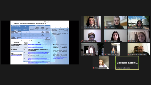 Предметом дискусійного обговорення стали питання обліку та аналізу управління експортно-імпортними операціями підприємств, оборотними активами, прибутком від операційної діяльності, продукцією рослинництва, доходами від реалізації продукції, управління розрахунками з оплати праці та з постачальниками. Активну дискусію викликало обговорення законодавчих змін у сфері обліку, оподаткування, аудиту в умовах воєнного стану.
