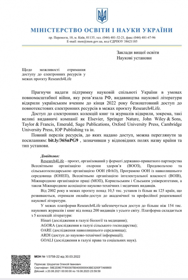 Повнотекстовий доступ до наукових публікацій від Research4Life Заступник декана з наукової роботи Юрій Ромасевич 8 квітня 2022 року 03:00 - 03:00