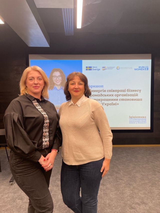 10 січня 2024 року представниці економічного факультету Юлія Негода та Тетяна Куць були запрошені на воркшоп «Синергія співпраці бізнесу і громадських організацій для покращення становища жінок в Україні» для обміну досвідом між представниками/-цями приватних компаній, бізнес-асоціацій та організацій громадянського суспільства щодо реалізації ініціатив на підтримку розширення прав і можливостей жінок під час повномасштабної війни і процесів відновлення, який організований в межах ініціативи «Розширення можливостей жінок у бізнесі», що реалізується ГО «Український центр сприяння інвестиціям та торгівлі» за фінансової підтримки ООН Жінки, Уряду Швеції у співпраці з Офісом Віцепрем’єрки з питань європейської та євроатлантичної інтеграції в рамках реалізації Проєкту «Трансформаційні підходи для досягнення гендерної рівності в Україні». Проєкт спрямований на використання трансформаційних підходів для просування гендерної рівності та розширення прав і можливостей жінок через співпрацю всіх ключових партнерів: уряду, парламенту, організацій громадянського суспільства, приватного сектору та ЗМІ. Ссеред інших стратегічних цілей, проєкт має на меті залучення приватних компаній до реалізації програм, які сприятимуть досягненню ґендерної рівності та економічному уповноваженню жінок на робочому місці, у ланцюгах постачання та у громадах.