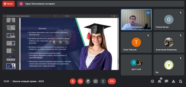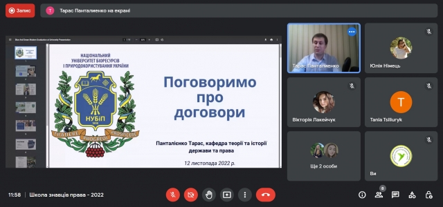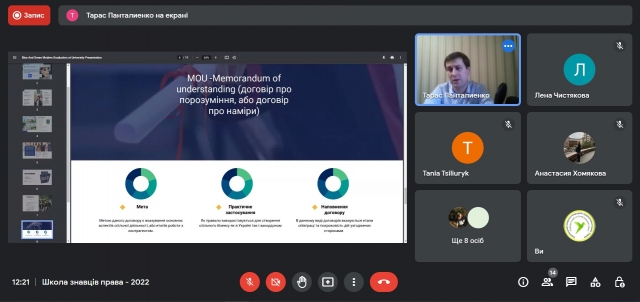12 листопада 2022 р. Тарас Панталієнко зустрівся з учасниками та учасницями осінньої сесії вебінарів просвітницького проєкту «Школа знавців права», щоб поговорити про договори.