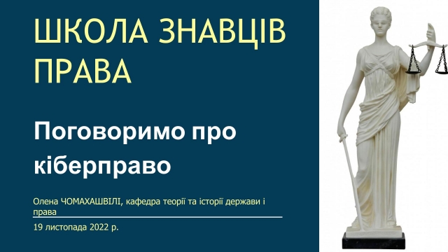 І уже наступного тижня, 19 листопада 2022 р., учасники та учасниці разом із спікеркою, доценткою кафедри Оленою Чомахашвілі будуть вести мову про кіберправо.