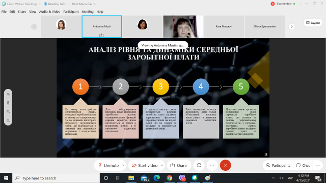 Мусій Антоніна Леонідівна з доповіддю на тему «Обліково-аналітичне забезпечення управління розрахунками з оплати праці» (керівник - к.е.н., доц. Куць Т.В.)