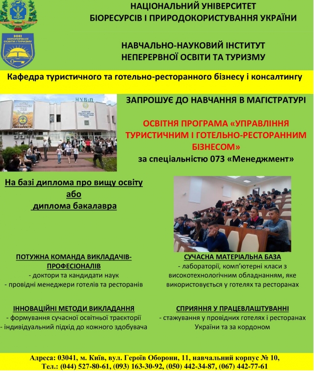 Запрошуємо на навчання в магістратуру за освітньою програмою "Управління туристичним і готельно-ресторанним бізнесом"!